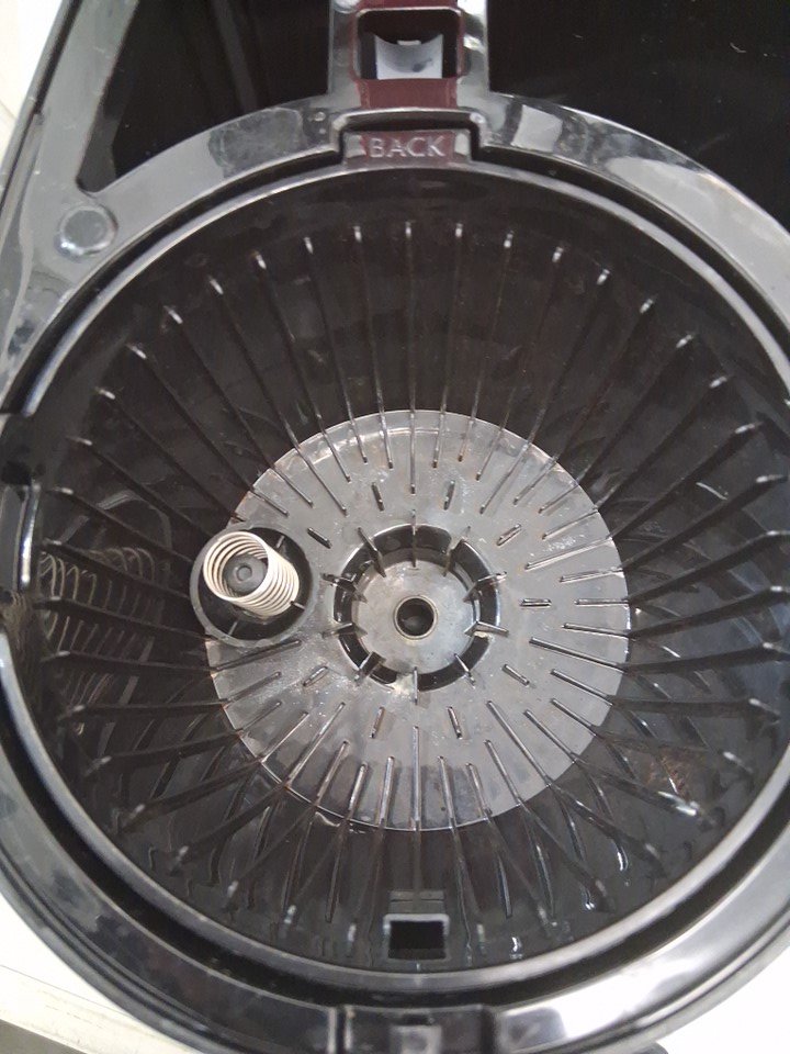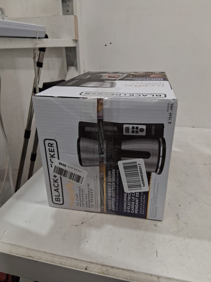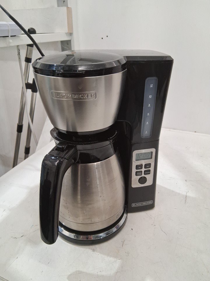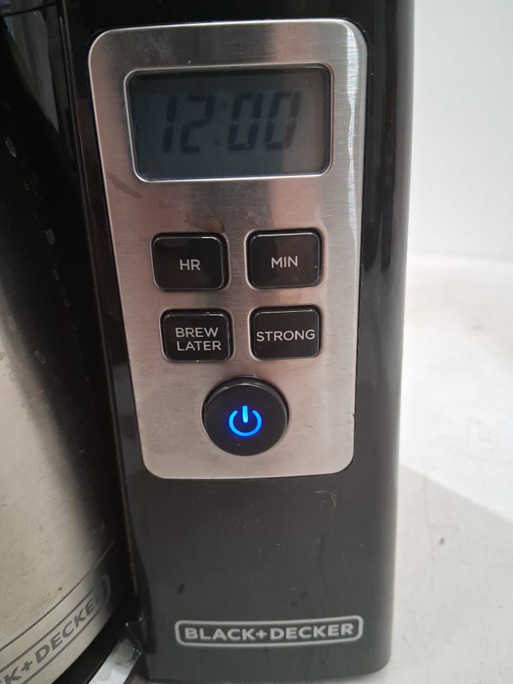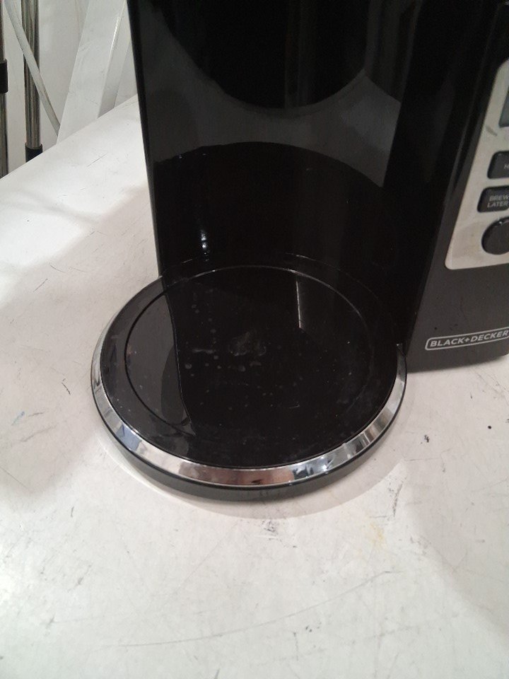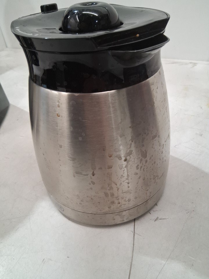 There is some leftover coffee in the carafe as well as some stains on the exterior and in the filter area, indicating prior use - see photos. Outside of this, there is no clearly visible damage or other issues with the coffee maker, and power appears to function normally.
