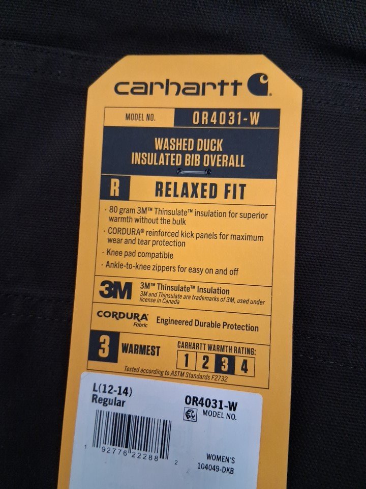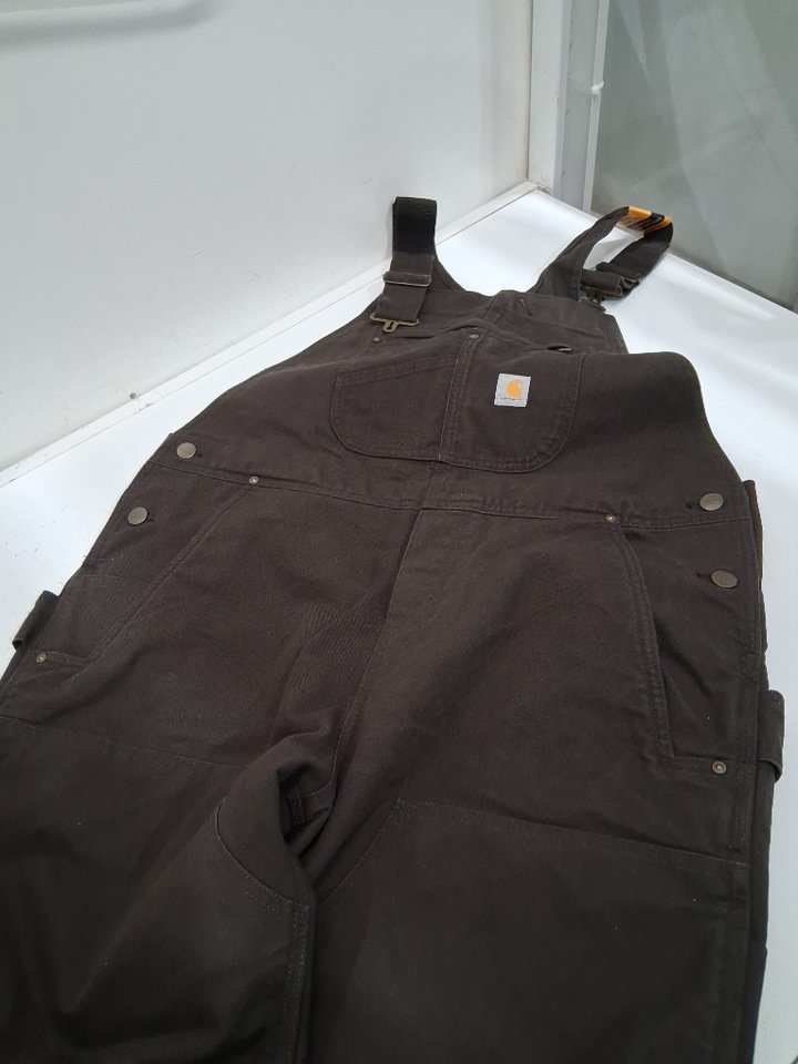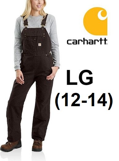 WOMENS CARHARTT RELAXED FIT WASHED DUCK INSULATED BIB OVERALLS - LARGE (12-14) - DARK BROWN (STYLE: OR4031-W)