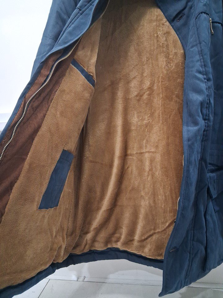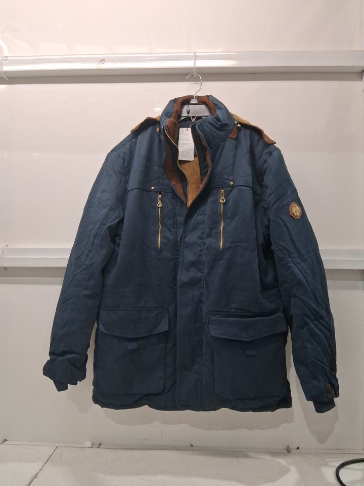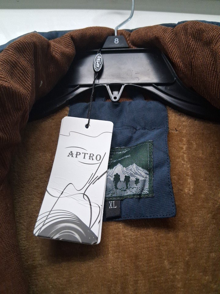 men's aptro Warm Faux Fur Lined winter jacket with Detachable Hood - extra large - navy blue/brown