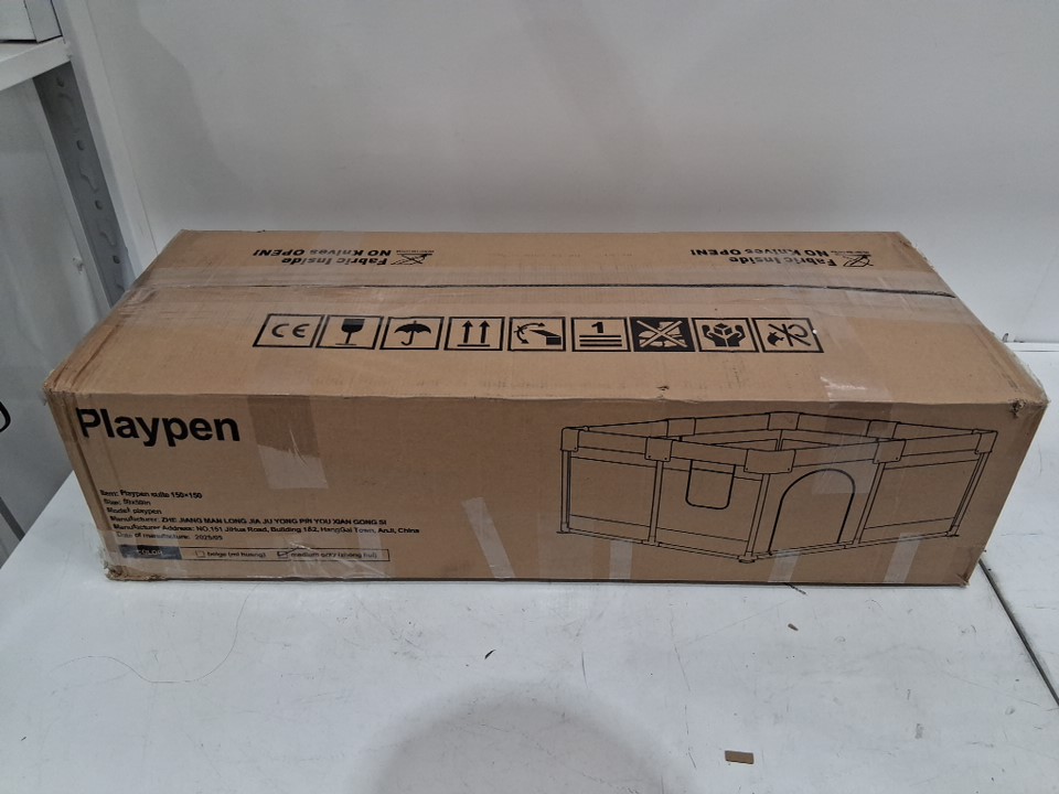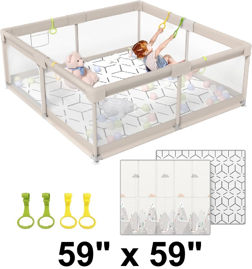 ZEEBABA Baby Playpen with Mat - 59" X 59" - GREY - (MODEL: PP-idyllic)