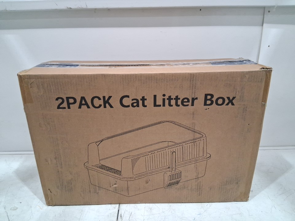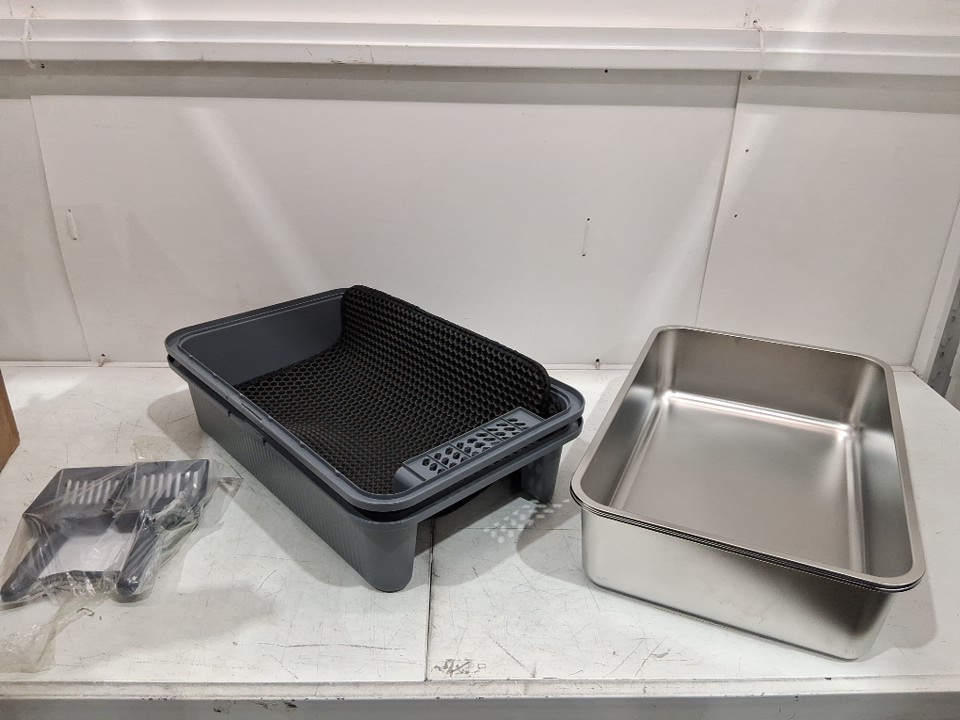2PK hihloy stainless steel cat litter box with mat and scoop for large or multiple cats - XXL - 23" X 15" X 11" - GREY