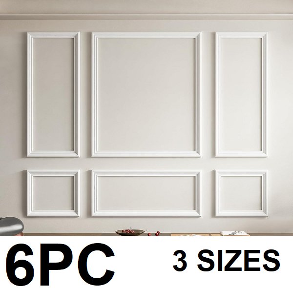 6PC Art3d pre cut wall molding set wainscoting panels for accent wall, paintable - White (model: ‎A20110)