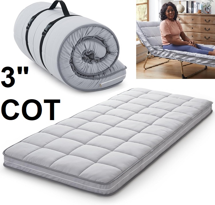 JAMDOK QUILTED SLEEPING PAD FOR CAMPING - cot size (24 "X 75" X 3") - GREY