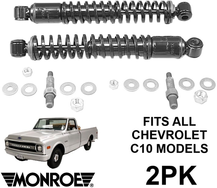 2PK Monroe Load Adjusting Suspension Shock Absorber and Coil Spring Assembly with Hardware - Fits All Chrvrolet C10 Models - Black (Model: 58241)