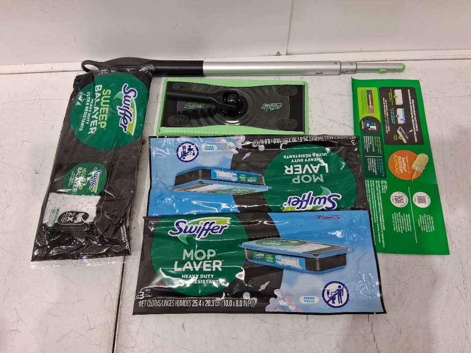 Swiffer 2-in-1 Sweep and Mop Deluxe Multi surface Mopping and Sweeping Kit with replacement pads (6 wet/ 5 dry) - green/black
