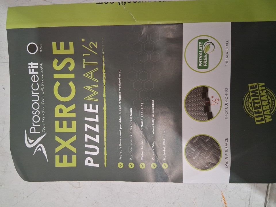 6PK PROSOURCEFIT PUZZLE EXERCISE MAT EVA FOAM INTERLOCKING TILES - 1/2" THICK - 24" X 24" - BLACK (model: 2627-3)