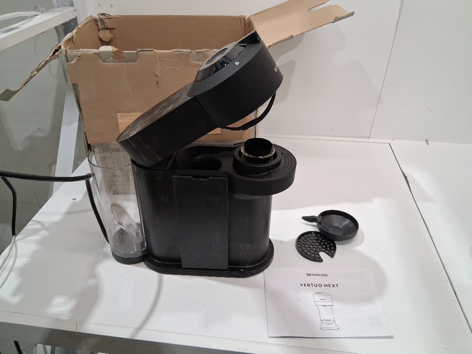 Machine appears new but is lightly dusty all over, wiped down by staff Also it is missing its sample pods