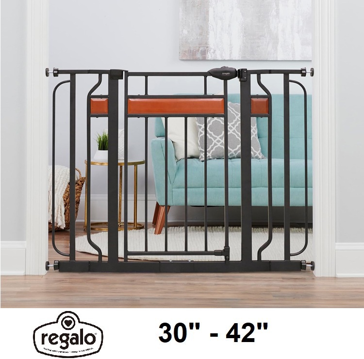 Regalo Home Accents Extra Wide Walk Thru Baby Gate - 30" to 42" - Black Cherry Wood (model: ‎0310DS)