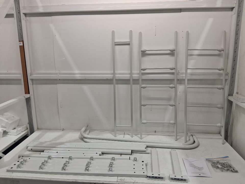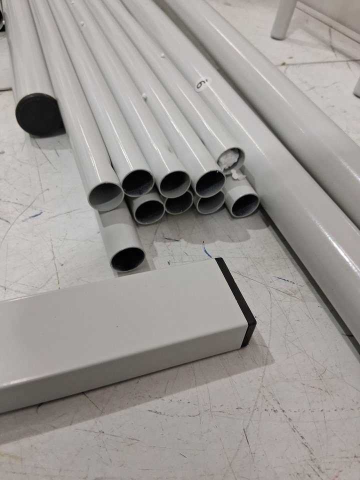 Please note that this product has been previously installed. There are installation and scratch marks on the poles due to previous use. The product may require additional generic hardware to install the product. (Please see photos)