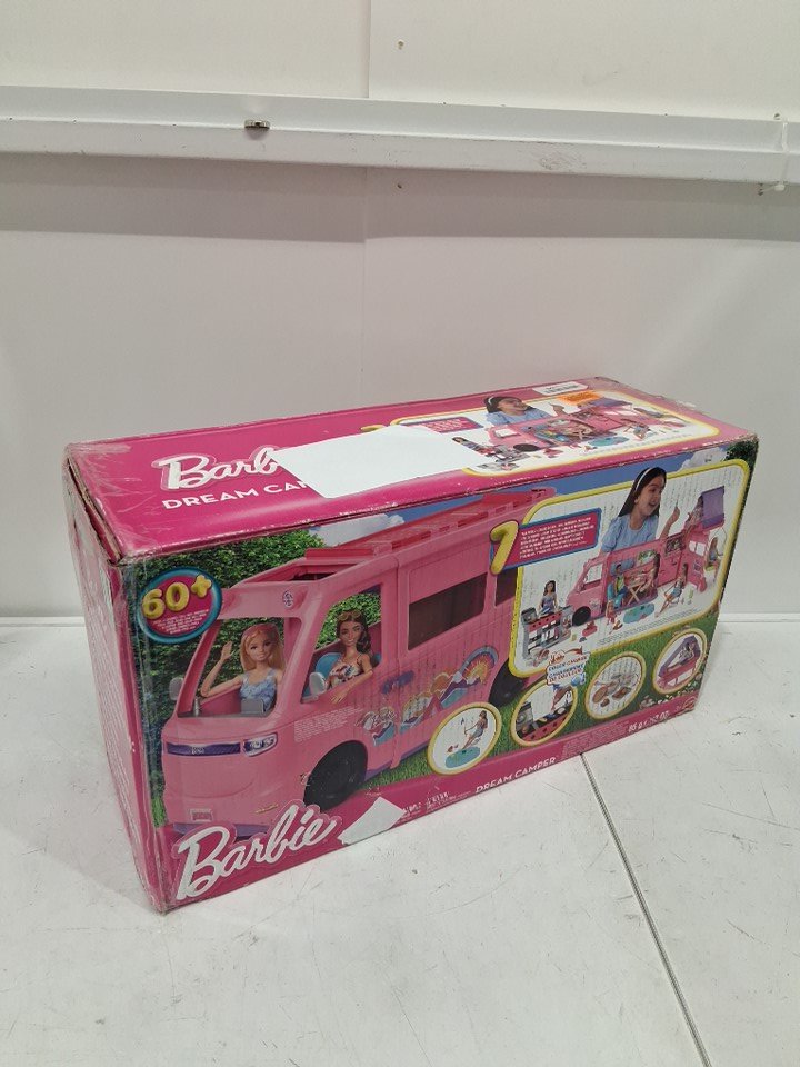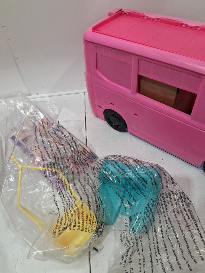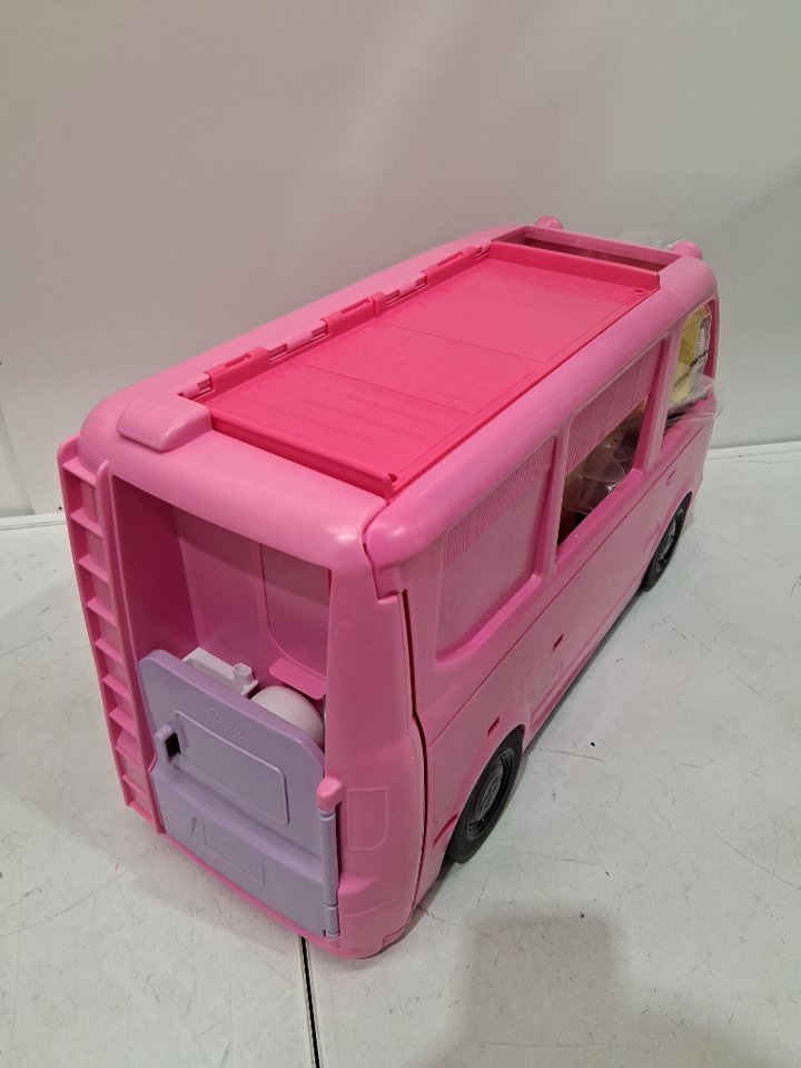 60+PC Barbie Dream Camper Playset With Roof Tent and BBQ Grill - pink (model: ‎HRJ78-9564)