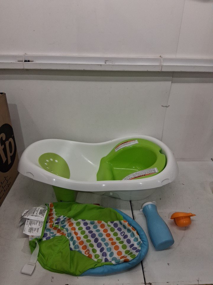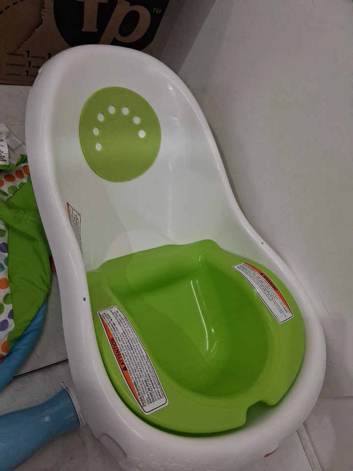 FISHER-PRICE BABY TO TODDLER BATH 4-IN-1 SLING 'N SEAT TUB WITH REMOVABLE SUPPORT - 25lb MAX - WHITE/GREEN - (MODEL: CHM32-966V)