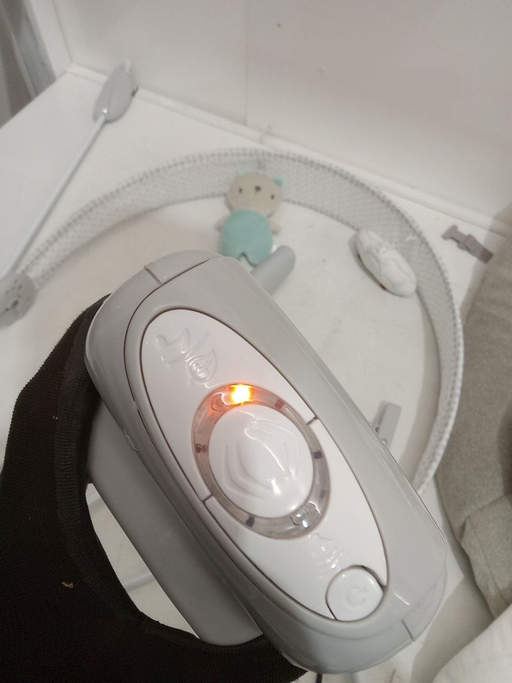 feet of bouncer has light dirt discoloration