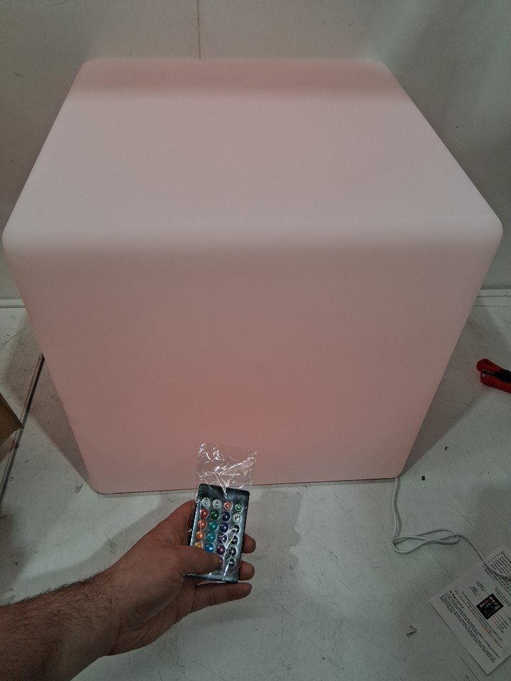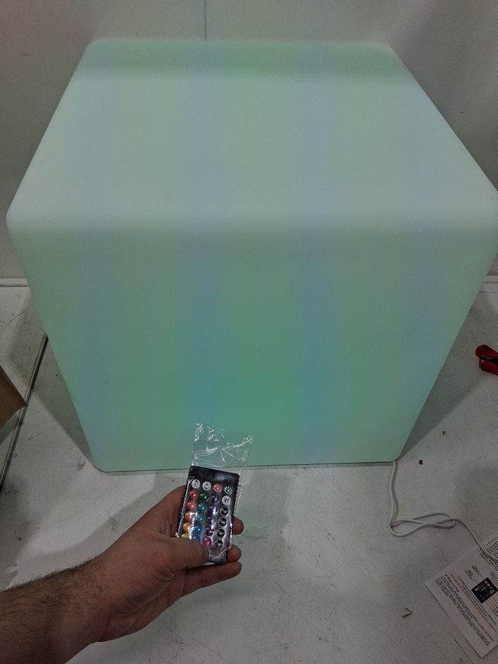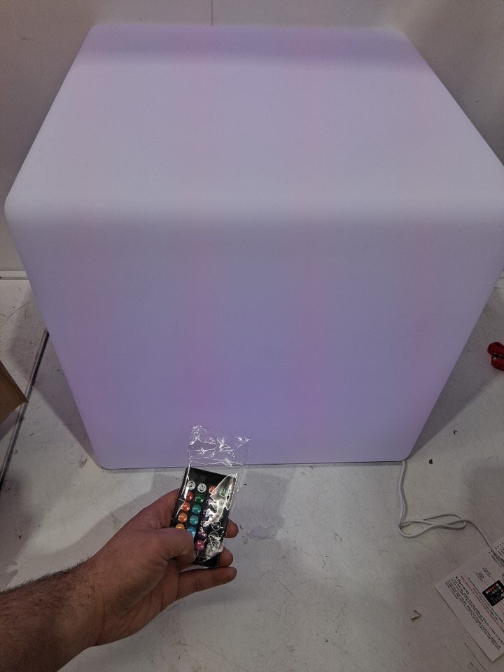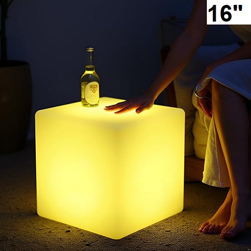 Fun LED Cube Chair Light, Rechargeable LED Cube Seat w/Remote, Dimmable RGB Color Changing Light Up Cubes - 16" - white / rgb light