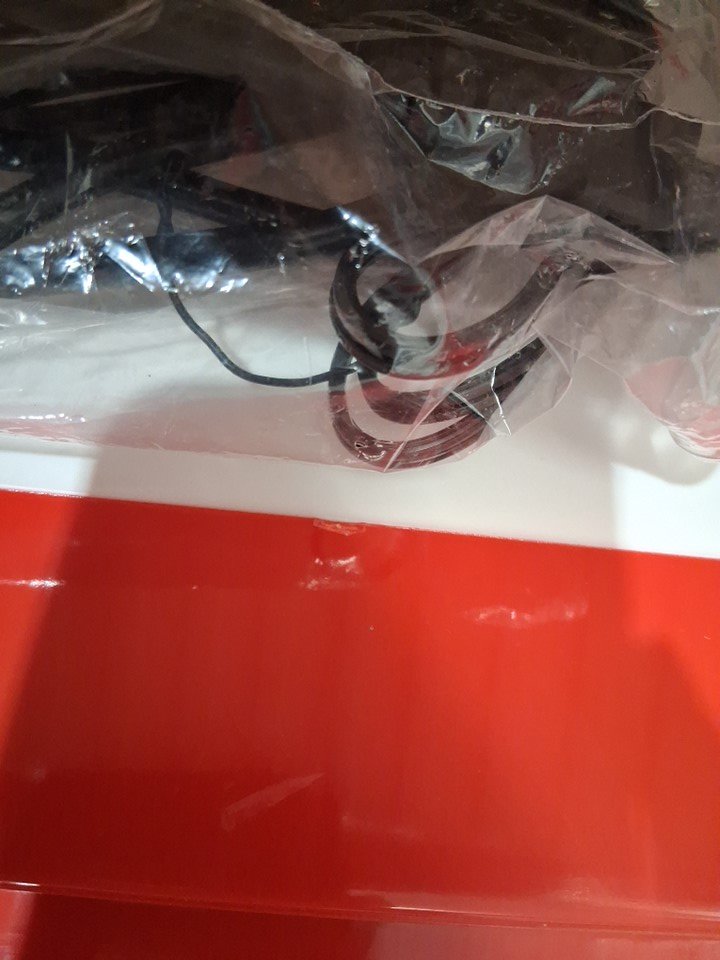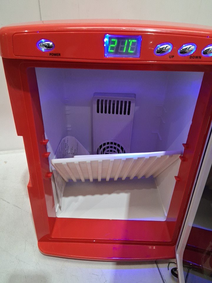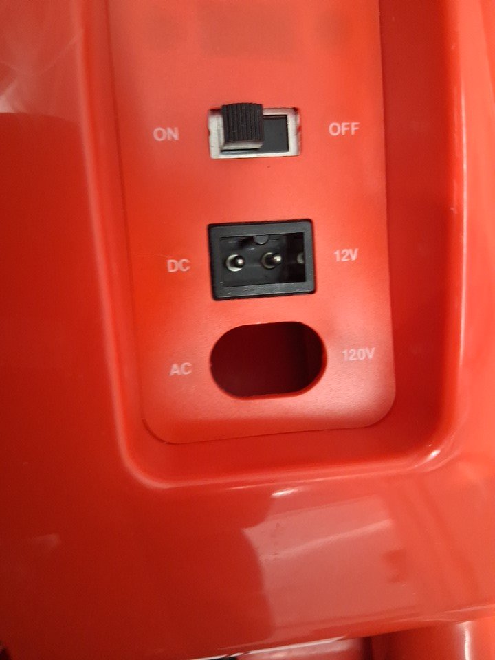 Please note the 110v plug is displaced and went inside the back panel. However, it can still be plugged with or without fixing it. We have tested the item for power both with 12v and 110v, see photos for reference. Item has very minor scuffing.