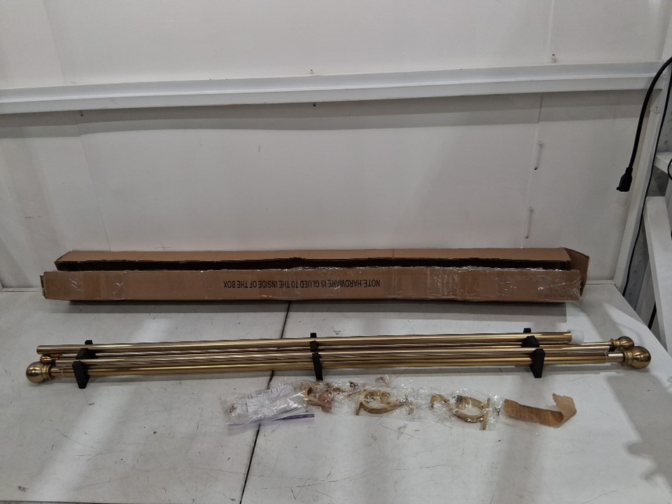 mayrhyme adjustable double window drapery curtain rod with round finals and aluminum brackets - 72" - 144" - warm gold