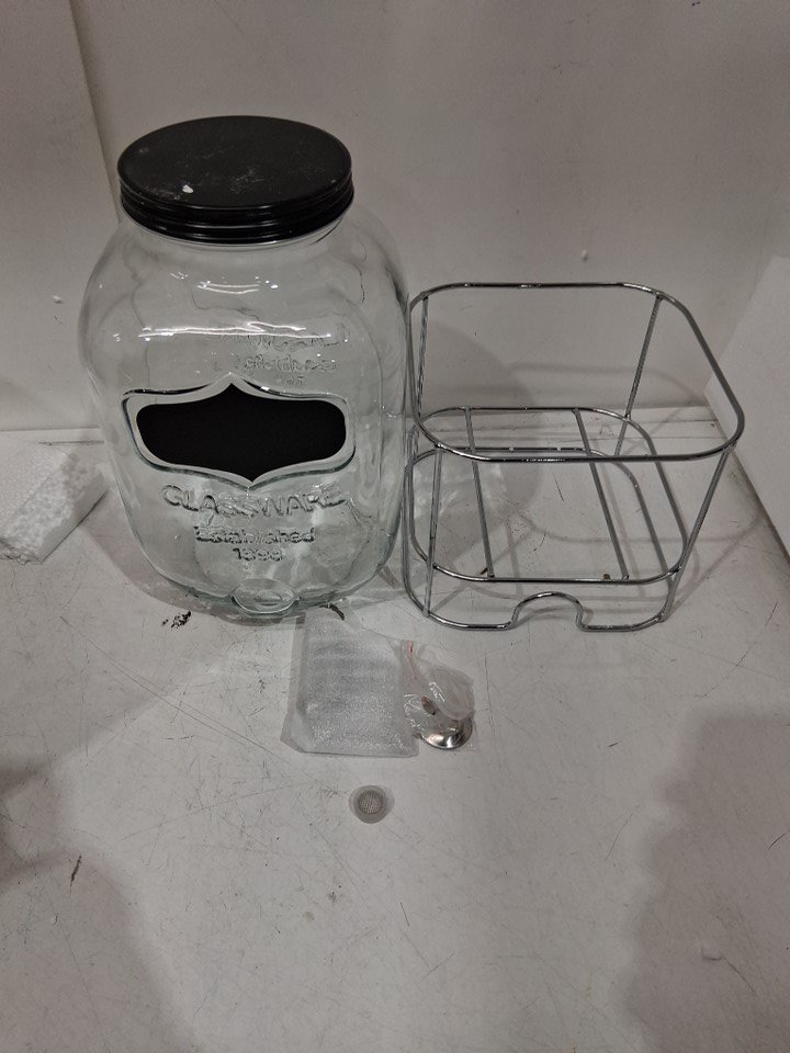Navaris GLASS Drink Dispenser With Silver Metal Stand AND TAP - 5L - SILVER