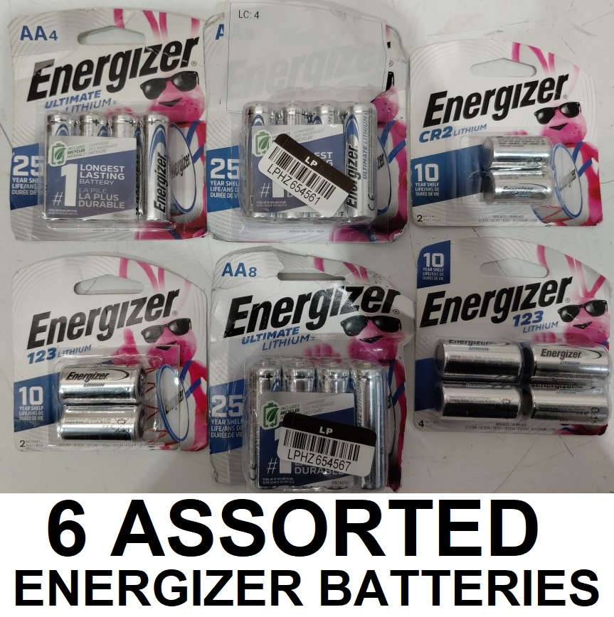 6 assorted energizer ultimate lithium batteries - aa/aaa/cr22/123