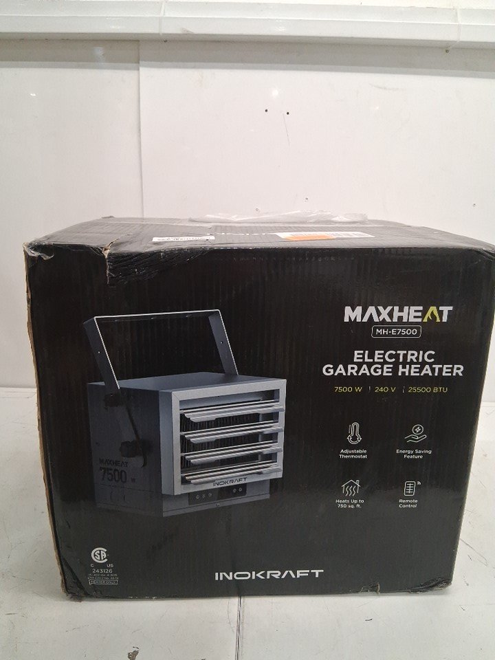InoKraft hardwired Electric Garage Heater - 7500W, Ceiling Mount, Fan Forced, Digital Thermostat, Remote control, 12-hour Timer, Overheat Protection (model: mh-e7500)