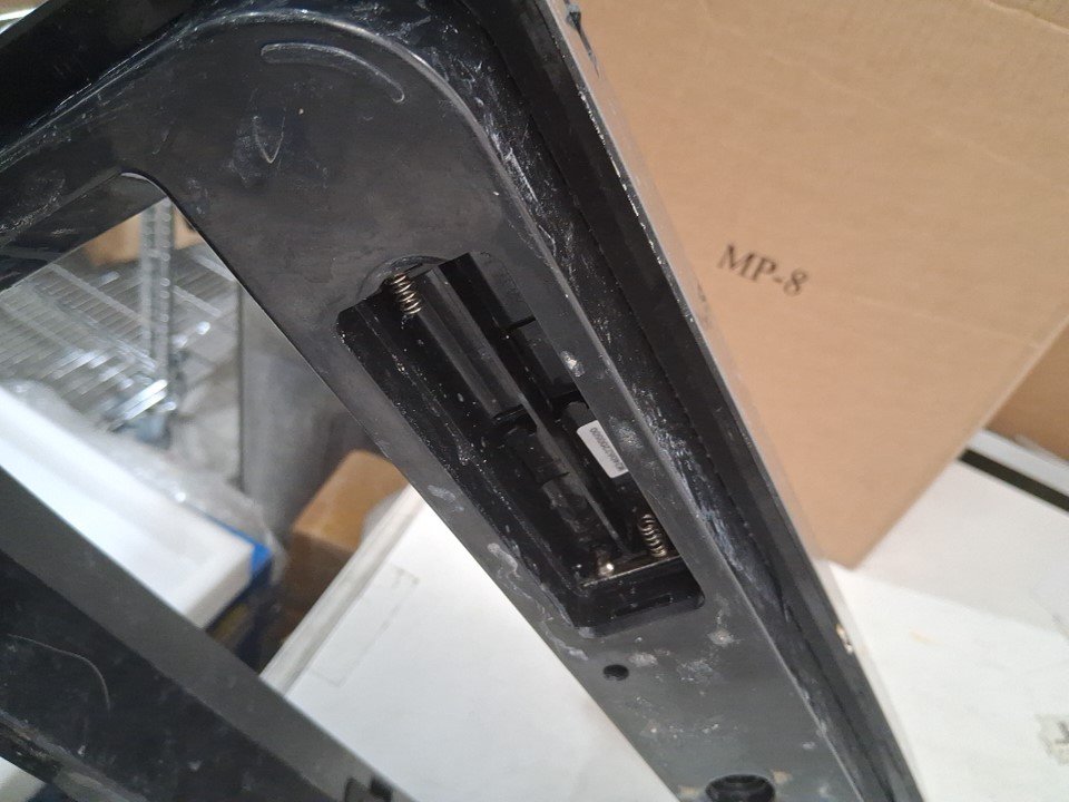 SOME DEBRIS PRESENT INDICATING PRIOR HEAVY USE AND THE ITEM IS MISSING THE LID FOR THE BATTERY COMPARTMENT. ITEM TESTED FOR POWER AND FUNCTION.
