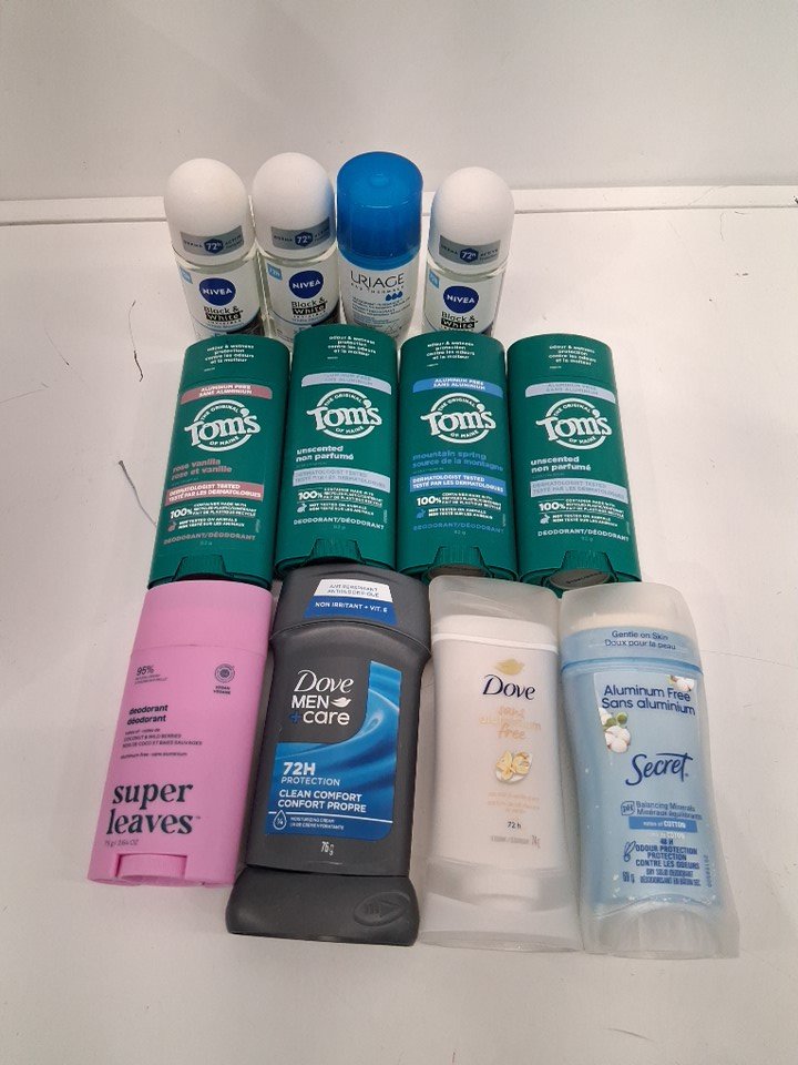 12 assorted antiperspirant /deodorants items - assorted brands/types/sizes