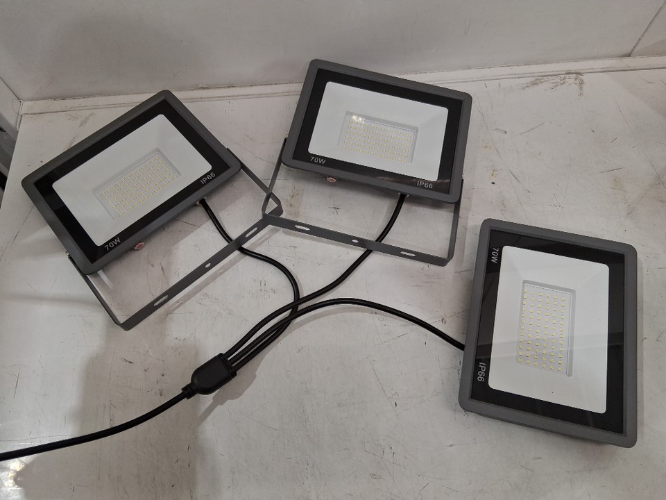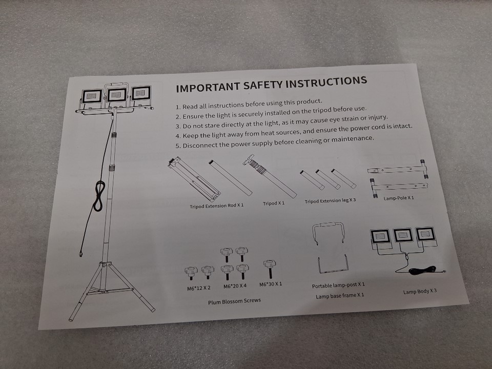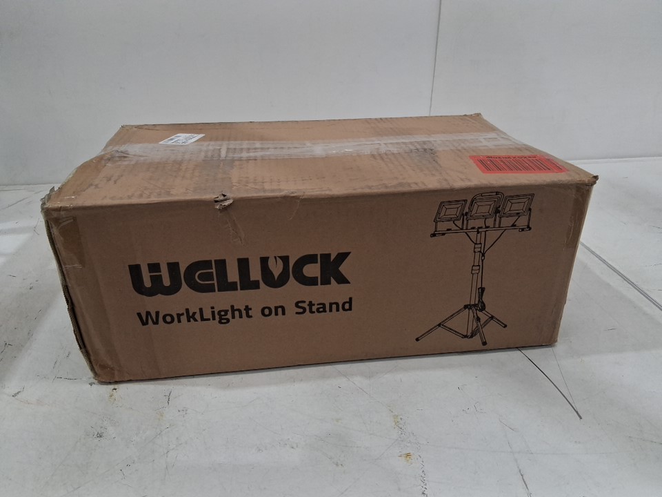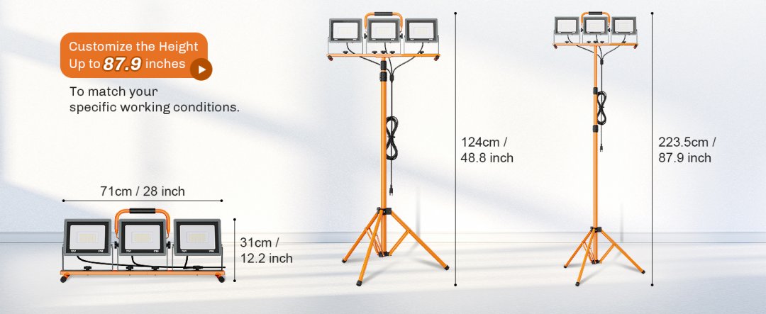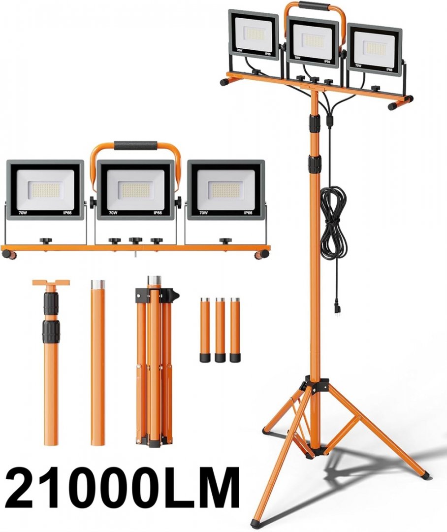 welluck 3-head waterproof industrial led work lights with stand - 21000LM, 88" max height - orange - (model: pl0107)