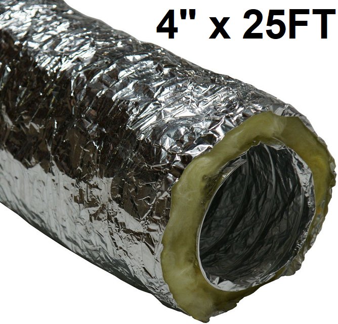Rubber-Cal HVAC Insulated-Flex Ducting Ventilation Duct Hose - 4" x 25FT