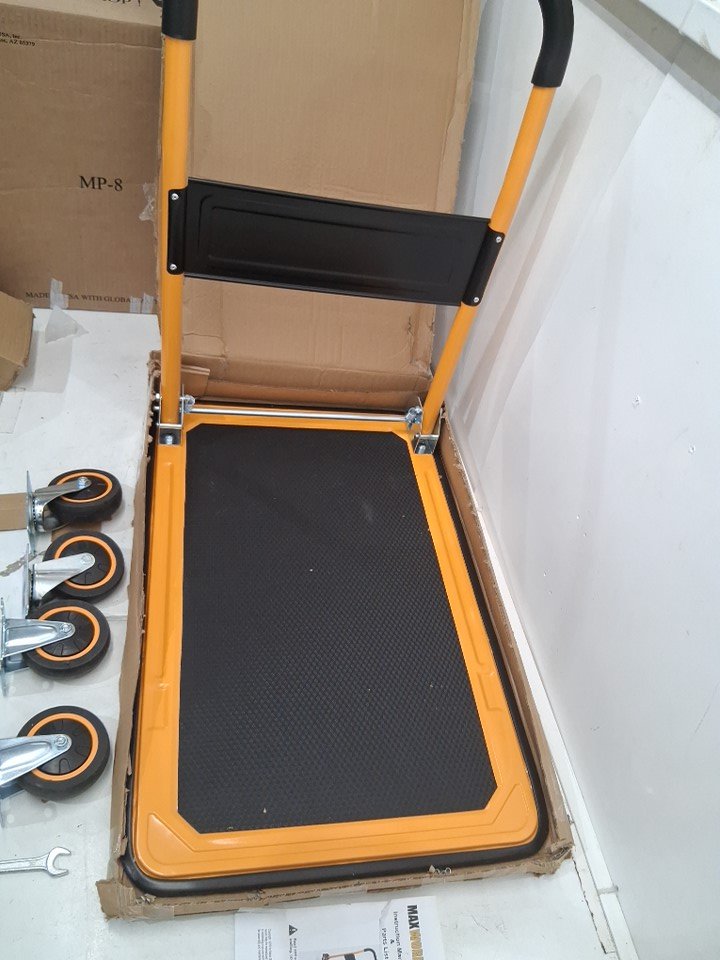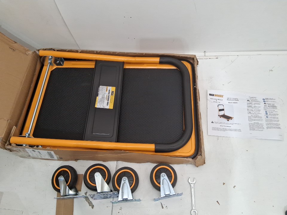 MaxWorks Foldable Platform Truck Push Dolly - 330lb weight cap - 28.7" x 18.7" x 33" - yellow/black (model: 80876)