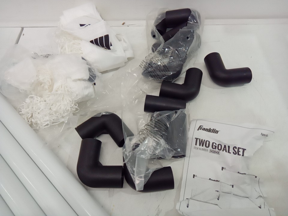 Franklin Sports Backyard Kids Soccer Goal - Portable Outdoor Kids Soccer Net - Includes 2 Soccer Goals and Ground Stakes - 54" x 36", Black (14304X)