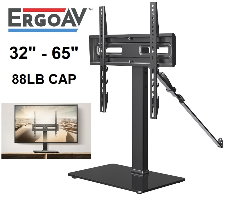 ERGOAV Swiveling Tabletop TV Stand FOR TVs 32" - 65" , 88lb capacity - Black (Model: ertsm3-01b)