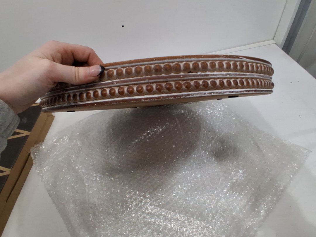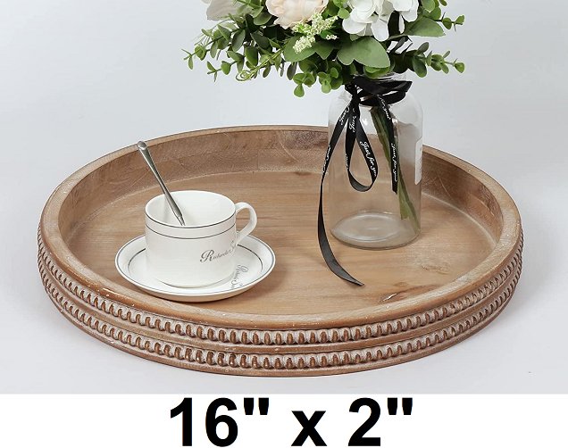 CARAH & COSSH ROUND WOODEN SERVING TRAY, WHITEWASHED ROUND DECORATIVE WOOD TRAY, 16" X 2" - WHITEWASHED