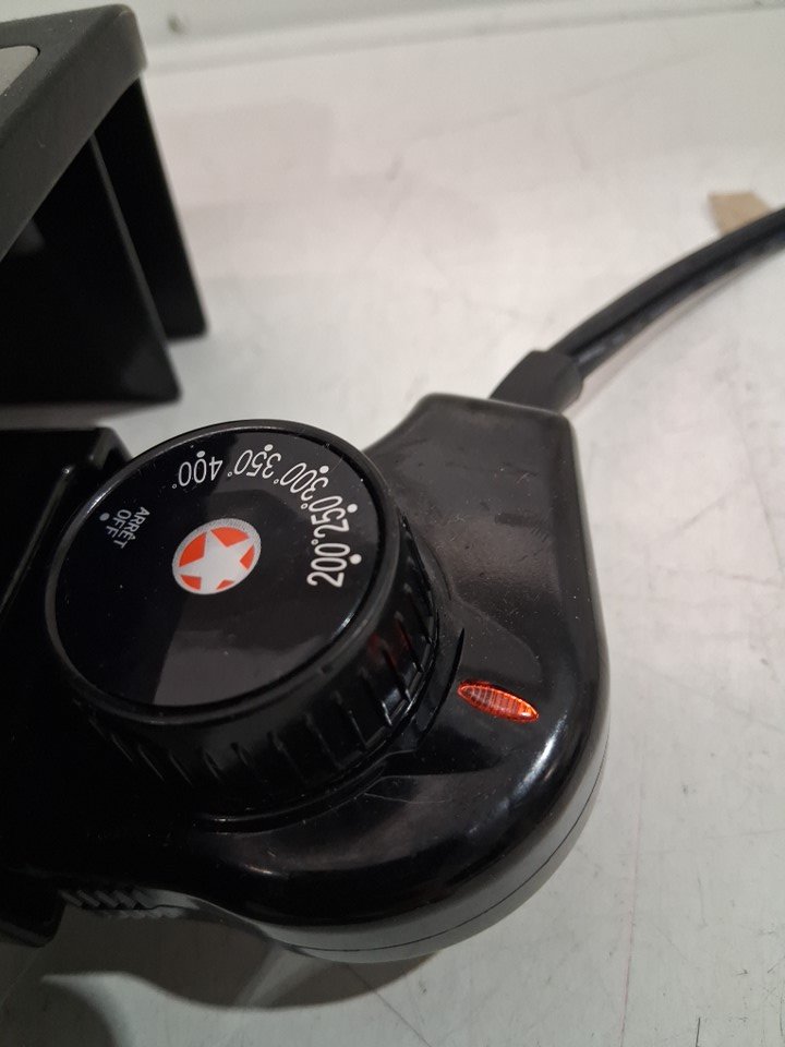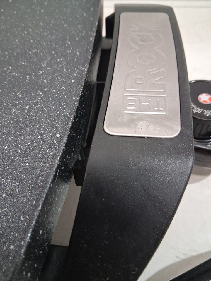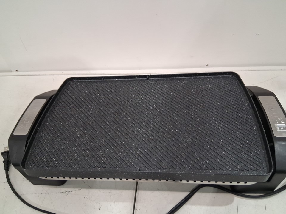 Tested for power, there are some grease marks on the side handles for grill/griddle, see photos.