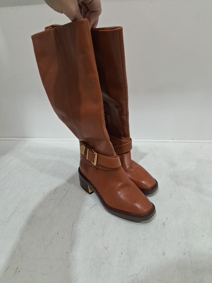 women Vince Camuto Gini4 Knee High Boot with buckle - size 5.5 WIDE CALF - brown