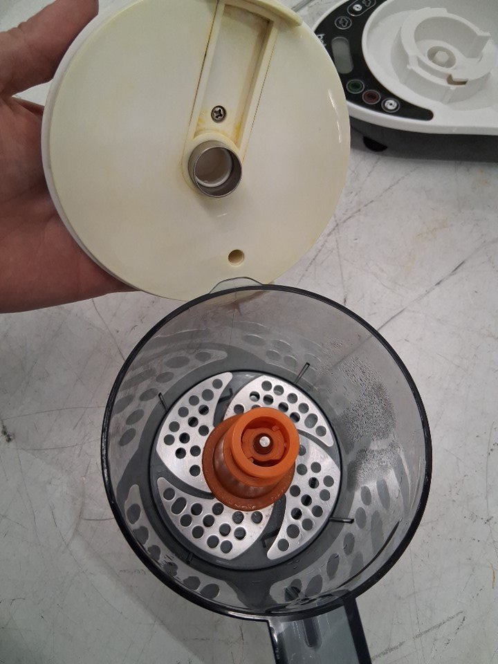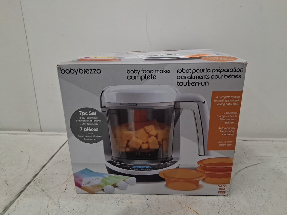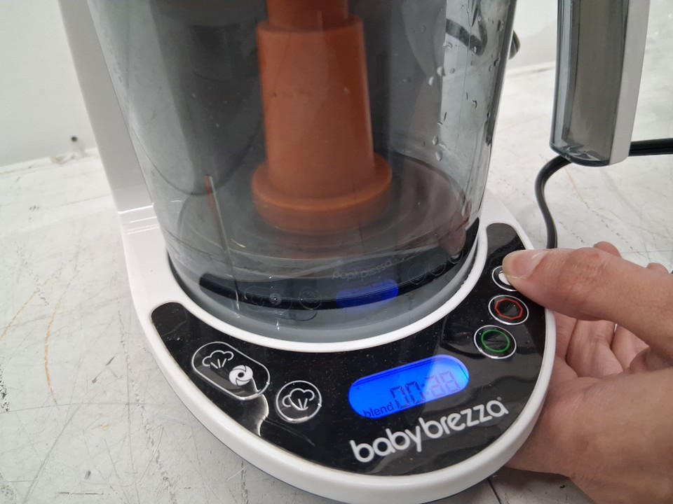 Liquid/food odor from previous use, missing reusable pouches and food maker bowls. Item was tested for power and function