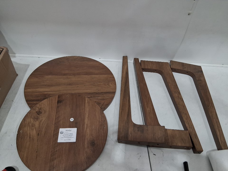 there is mark on the holes from assembly with hardware. loose hardware in box - light marks on the legs and round base of table.