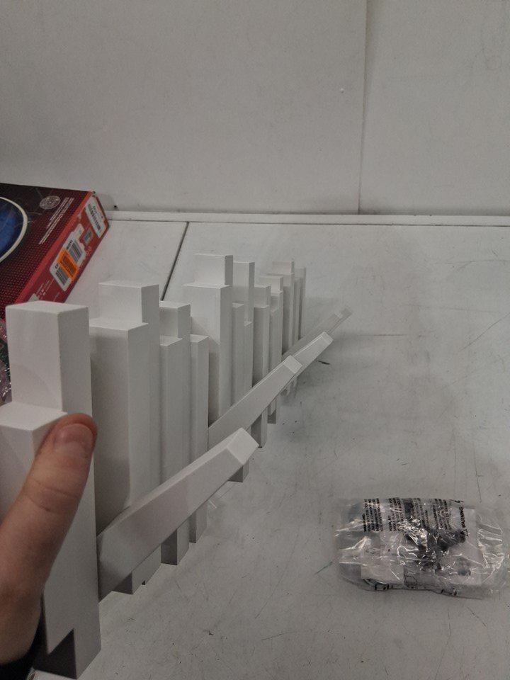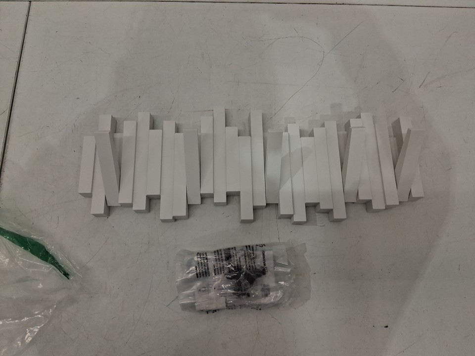 UMBRA WALL MOUNTED "STICKS" MULTI HOOK SPACE SAVING COAT RACK WITH 5 TUCK-AWAY HOOKS - 19 1/4" x 7" - WHITE