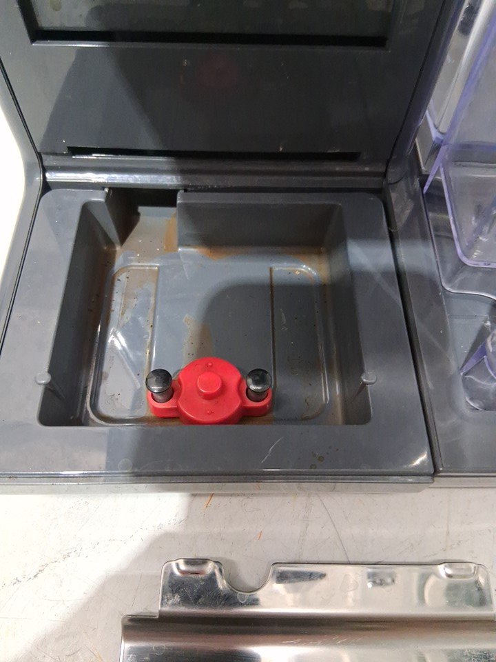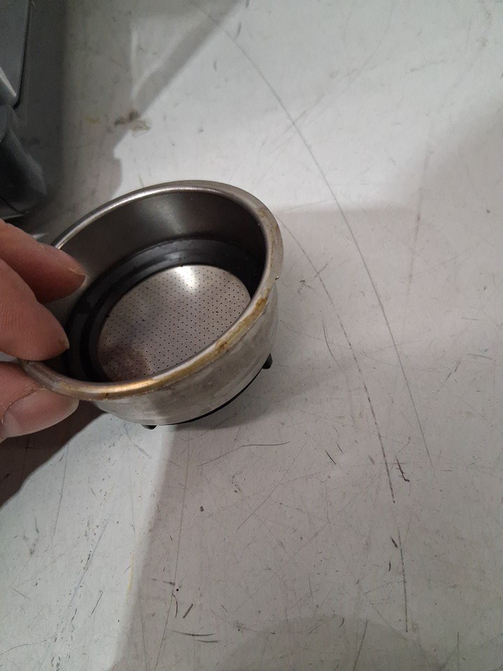 item has dried coffee in drip tray and on accessories , scatch, smears on water tank ( see photos)