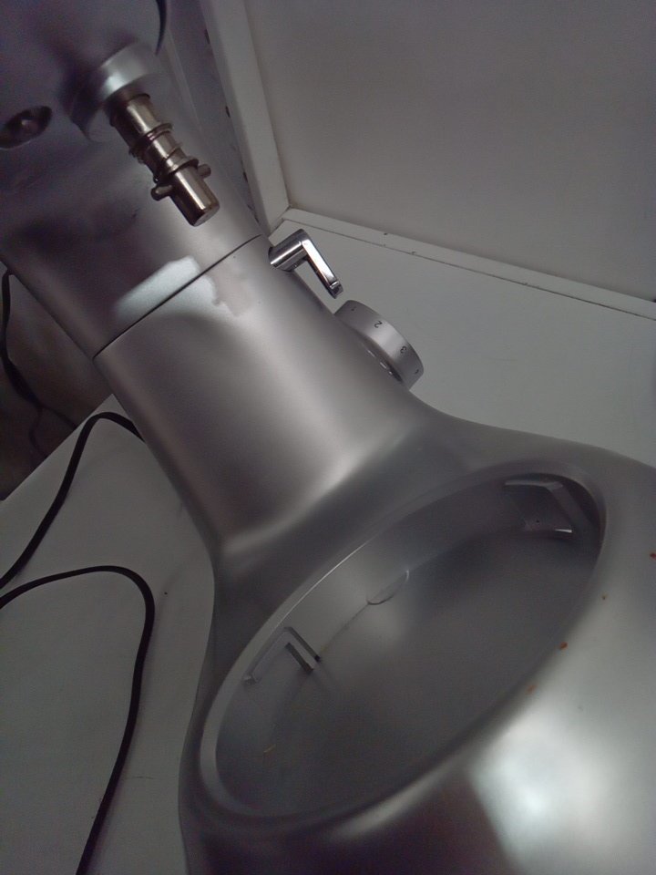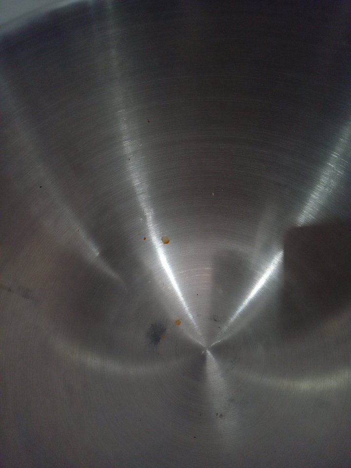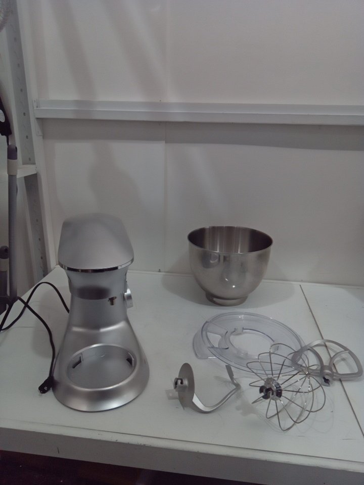 tested for power, appears to have some stains from pervious use on the front of the mixer and in the mixing bowl.