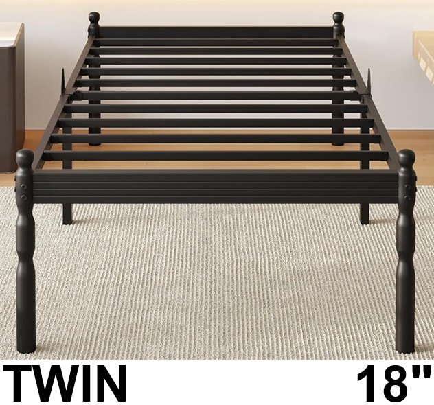 Heavy Duty METAL BED FRAME - 18" - TWIN - BLACK (MODEL: TB3504-18)
