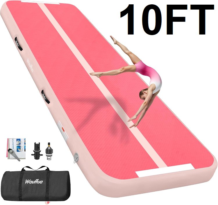 Wauffua Inflatable Gymnastics Tumbling Air Tumble Mat Track - 10FT x 3.3FT x 4" - PINK