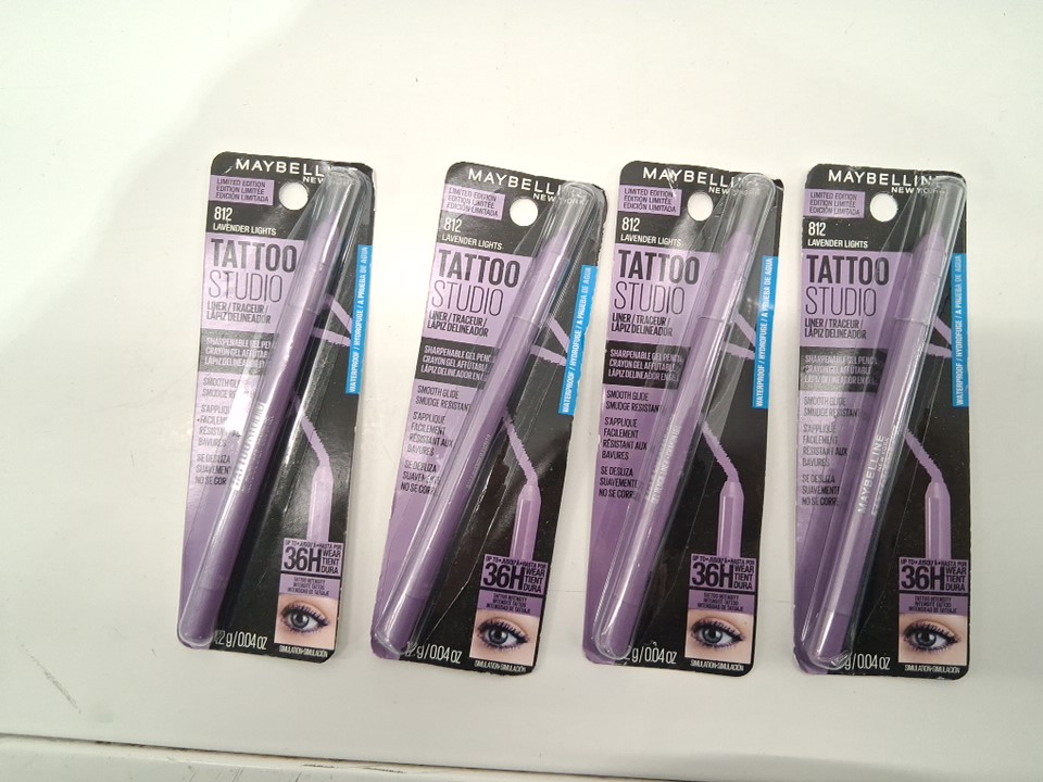 4 MAYBELLINE Tattoo Studio Sharpenable Eyeliner Pencil - 36 Hour Wear - 1.2g/each - Lavender Lights - (STYLE: 812)