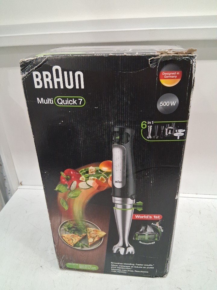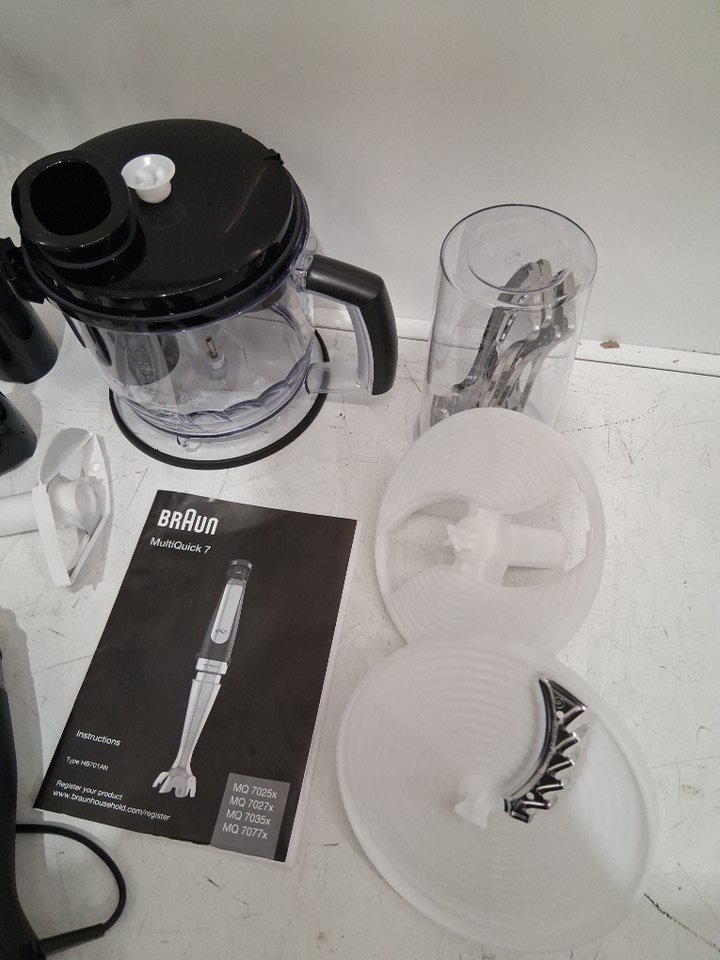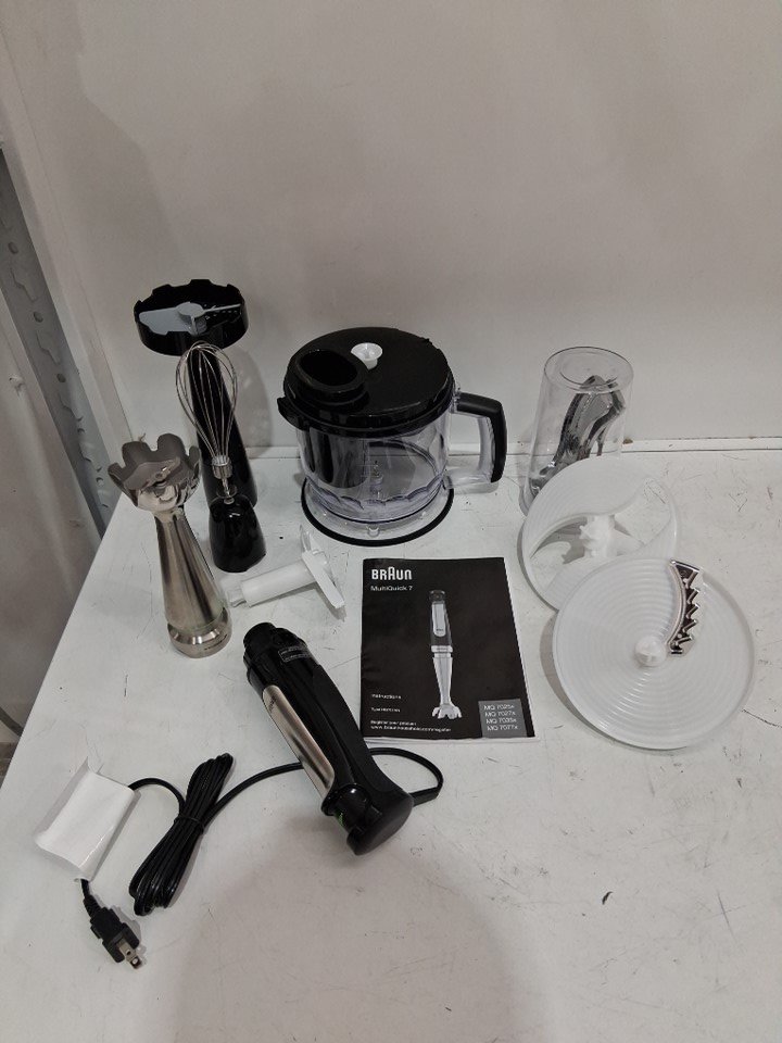 BRAUN MULTIQUICK 7 IMMERSION HAND BLENDER with 6-cup food processor, whisk, beaker, and masher- BLACK/STAINLESS STEEL (MODEL: HB701AN/MQ7077dX)