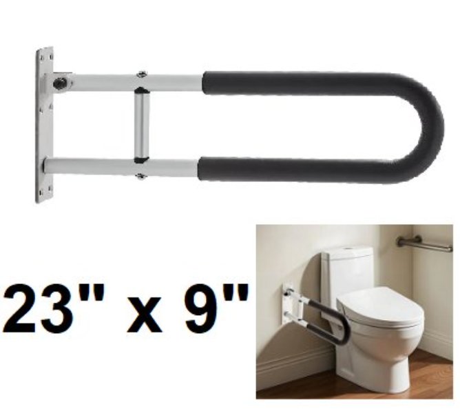 multiuse folding safety support toilet handrail - 23" x 9" - Black/Silver (Model: FBL210211)