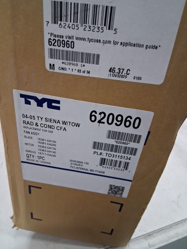 TYC Cooling Fan - FOR 2004-2005 TOYOTA SIENNA - BLACK/WHITE - (MODEL: 620960)
