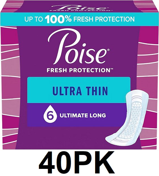 40PK POISE ULTRA THIN PADS - 6 ULTIMATE LONG