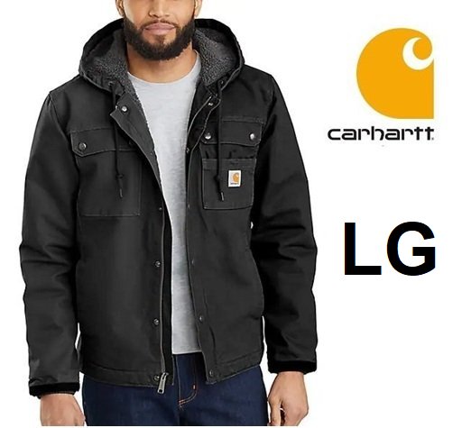 MEN'S CARHARTT RELAXED FIT WASHED DUCK SHERPA-LINED UTILITY JACKET - Large - BLACK (STYLE: OJ3826-M)
