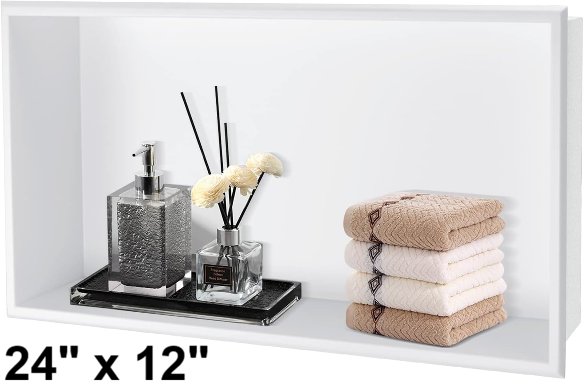 DAYONE SHOWER NOOK - RECESSED BATHROOM WALL SHELF - 12" x 24" - white (MODEL: SN2412-wh)