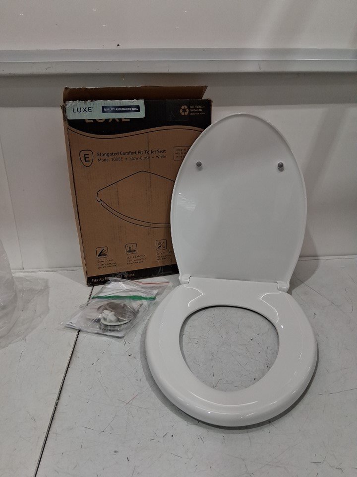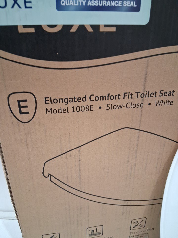 LUXE ELONGATED COMFORT FIT TOILET SEAT WITH SLOW CLOSE QUICK RELEASE HINGES NON SLIP BUMPERS AND FITS WITH LUXE BIDETS, 18.5" x 14" x 1.8" - WHITE (MODEL: 1008E)