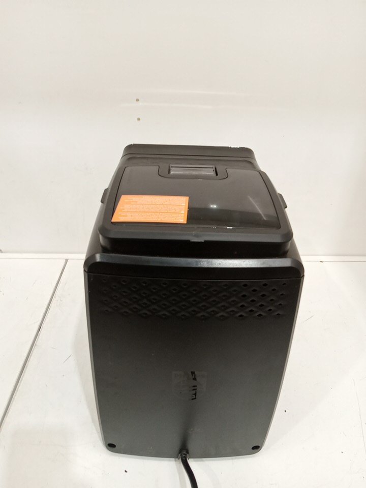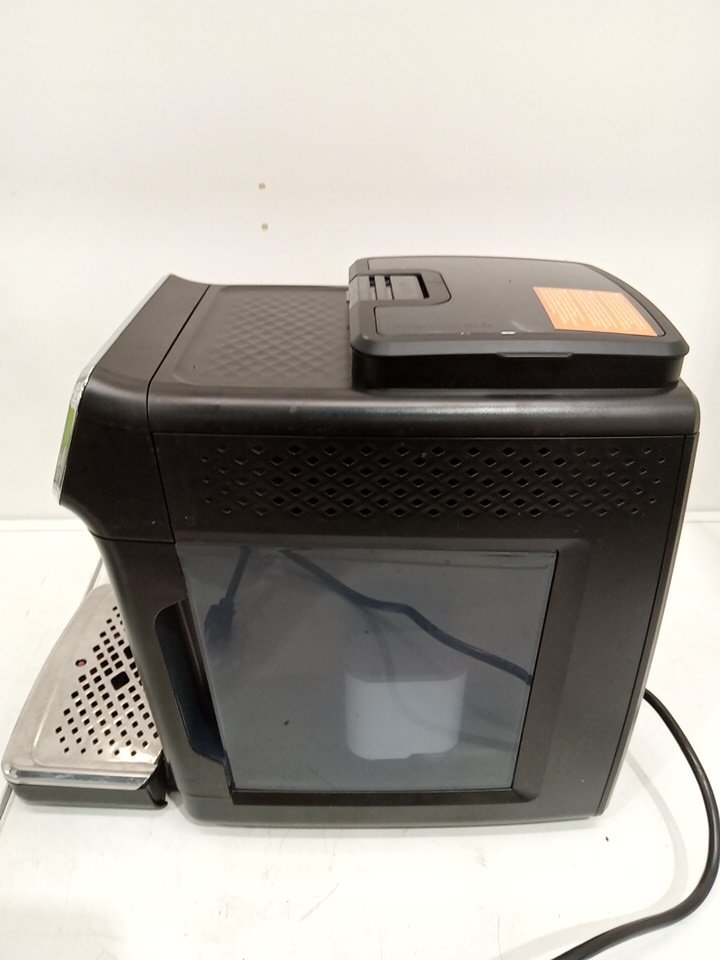 Item shows signs of being previously used prior to being returned (coffee grinds/residue and water residue spots are present on parts of the item). Item tested for power only. Unable to fully test item due to it's nature. Item marked with issue as it is missing a black plastic container piece that goes in the middle of the unit/on the tray, which is why the error light comes on when you turn the unit on. Customer will require purchasing this piece in order to properly use the item.
