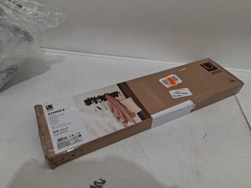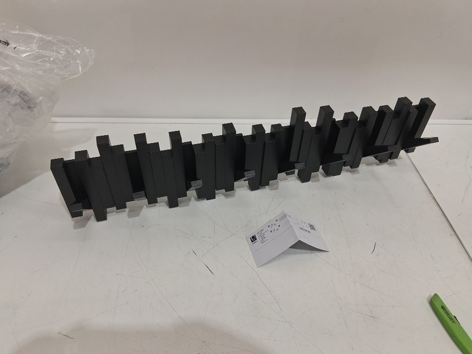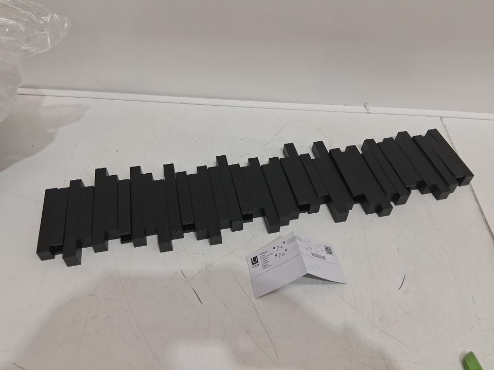 UMBRA WALL MOUNTED "STICKS" MULTI HOOK SPACE SAVING COAT RACK WITH 8 TUCK-AWAY HOOKS - 28 3/8" x 7 1/8"- BLACK