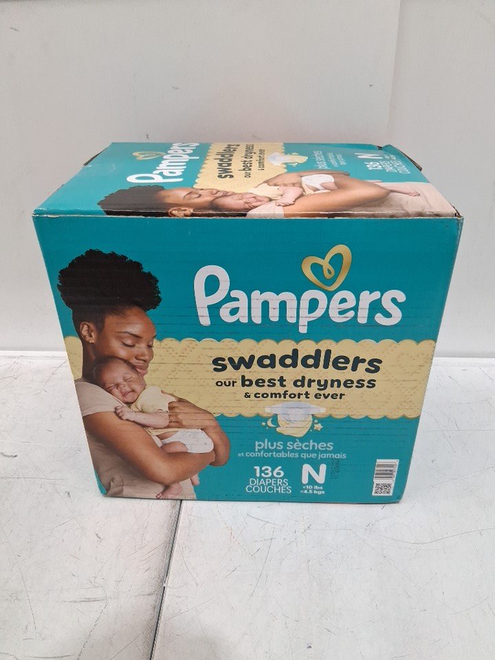 136PK PAMPERS SWADDLERS DIAPERS - NEWBORN SIZE